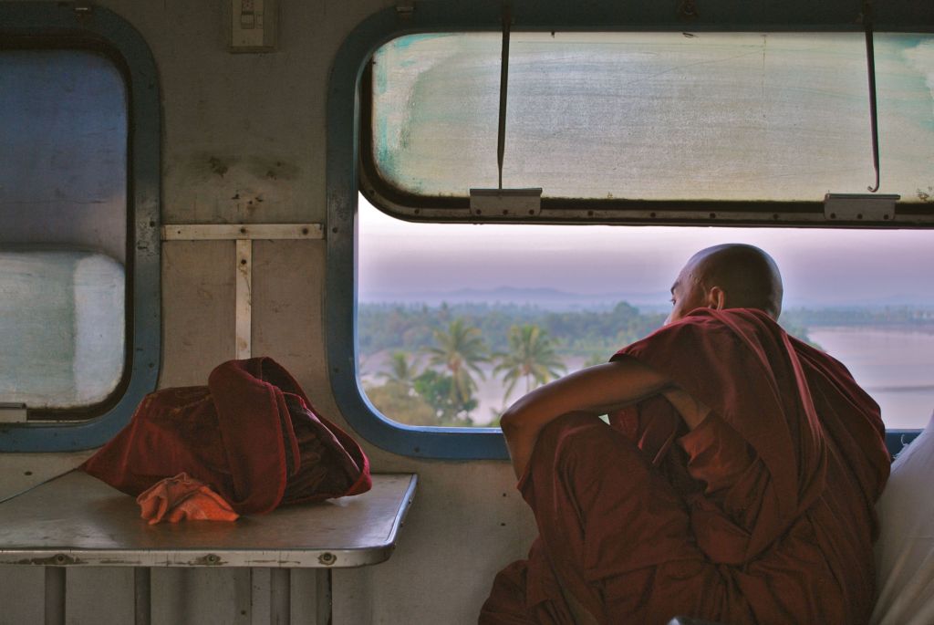 De retour de Birmanie, je reprends le fil de mes photos hebdomadaires. Vous vous en doutez, la photo de cette semaine sera donc une photo de Birmanie ! Avant d’en écrire un peu plus sur ce voyage d’un mois au milieu des pagodes et des sourires, et de vous gratifier d’un album photo complet, je vous livre le regard curieux et méditatif de ce moine, découvrant comme nous le lever de soleil sur Moulmein, au terme d’un voyage en train d’une douzaine d’heure.